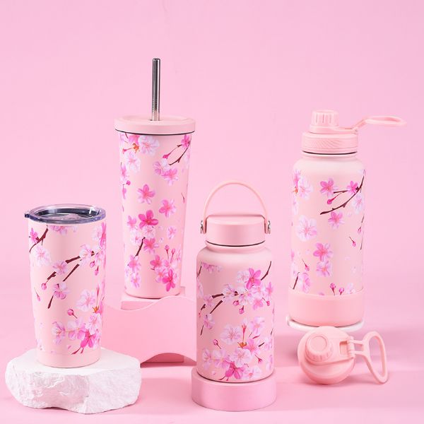 1、Product Name: Pink Cherry Blossom Set Stainless Steel Vacuum Bottle